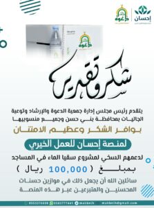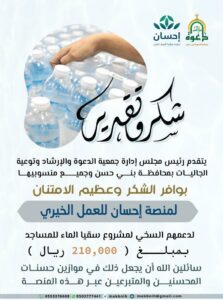 سقيا الماء للمساجد – بدعم منصة إحسان للعمل الخيري