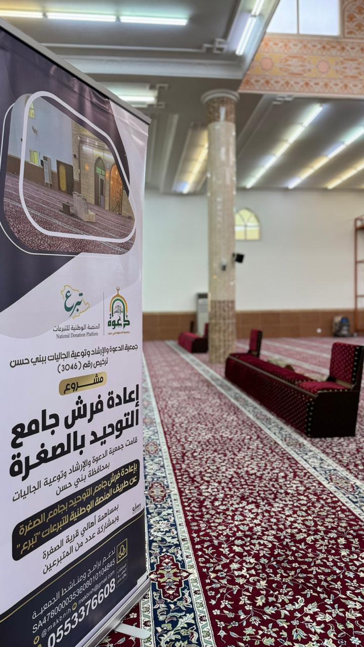 فرش جامع التوحيد بالصغرة – بدعم المنصة الوطنية للتبرعات “تبرع”