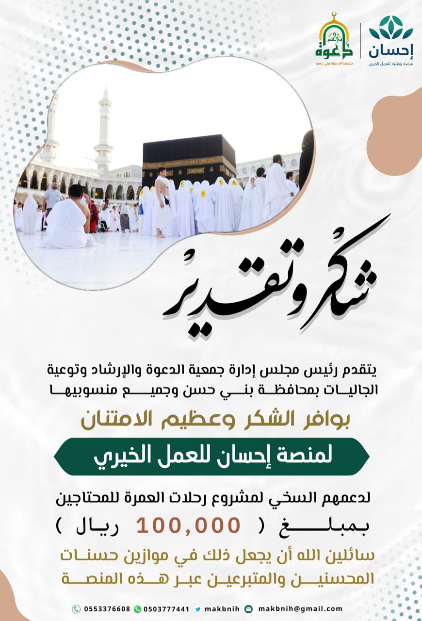 رحلات العمرة للمتعففين – بدعم منصة إحسان للعمل الخيري